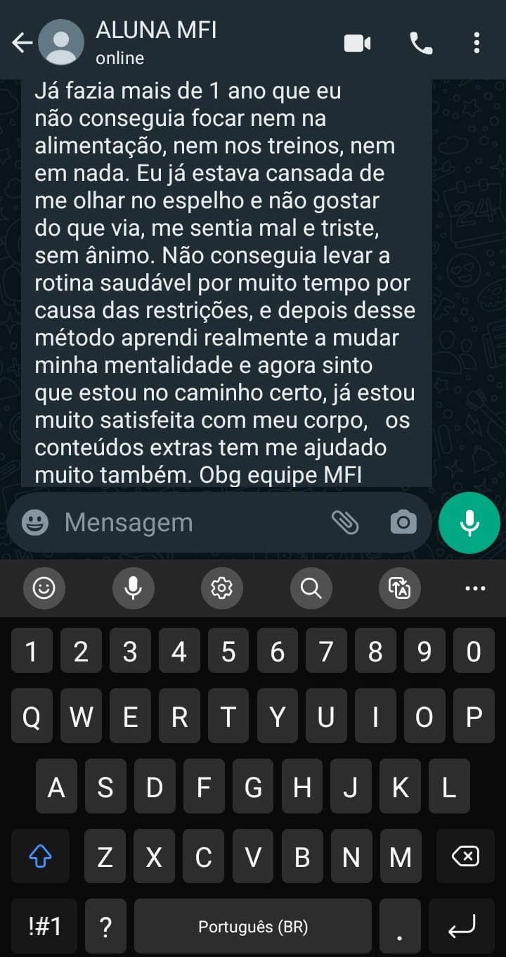 Eu estava decidida a mudar, e procurei ajuda com os maiores especialistas em saúde feminina, e adivinha? Vou revelar tudo agora para você os segredos infalíveis que me fizeram perder peso, secar e definir sem dietas malucas ou restrições! Esse conteúdo é exclusivo para você que está cansada de tentar varias coisas e não consegue ter resultados. Vou te mostrar os segredos secretos para evoluir e nunca mais procrastinar na sua vida